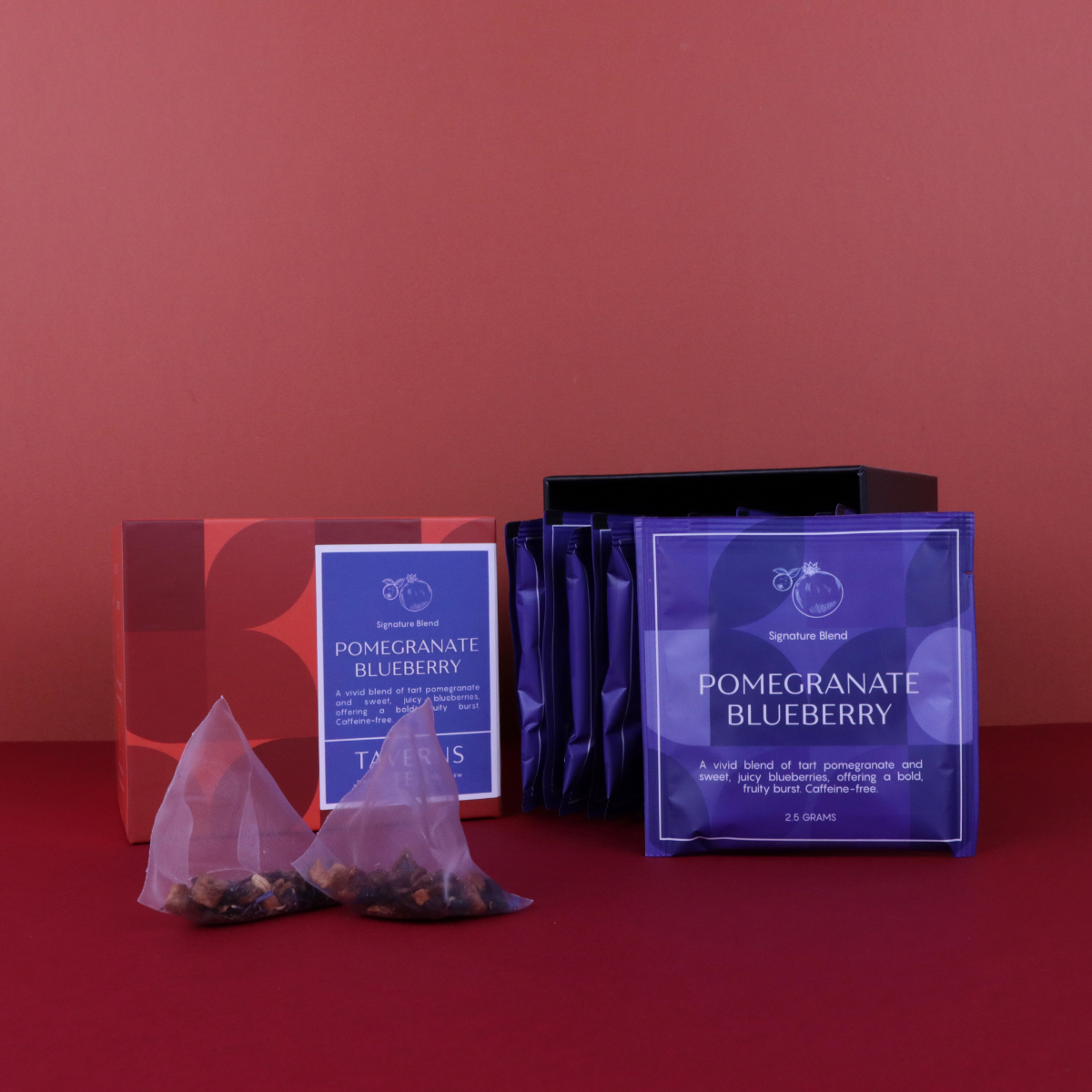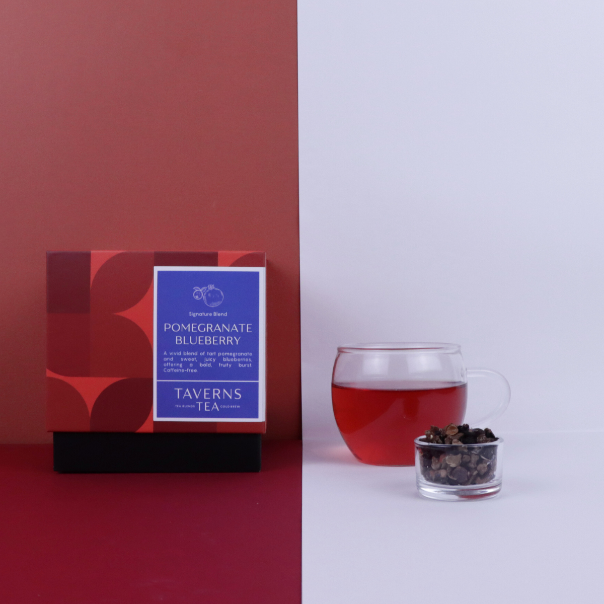 A vivid blend of tart pomegranate and sweet, juicy blueberries, offering a bold, fruity burst. Caffeine-free.